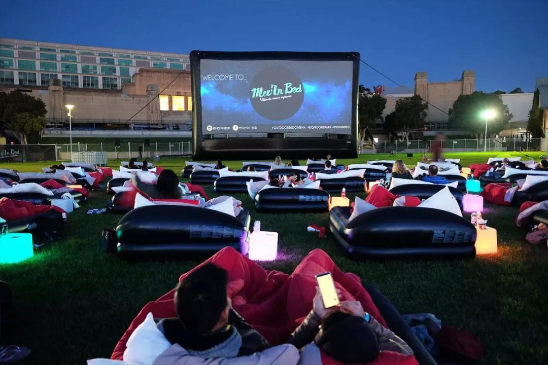 再举一个例子:在悉尼某处户外草坪上,活动公司在那里搭建起一座独特的“户外床电影院”。邀请了近200位嘉宾在现场进行体验,在星空下,嘉宾躺在充气床上,就可以一边观看好莱坞大片,一边享受食物直接送到嘴边来的服务,不得不说这种体验很容易惯坏用户。