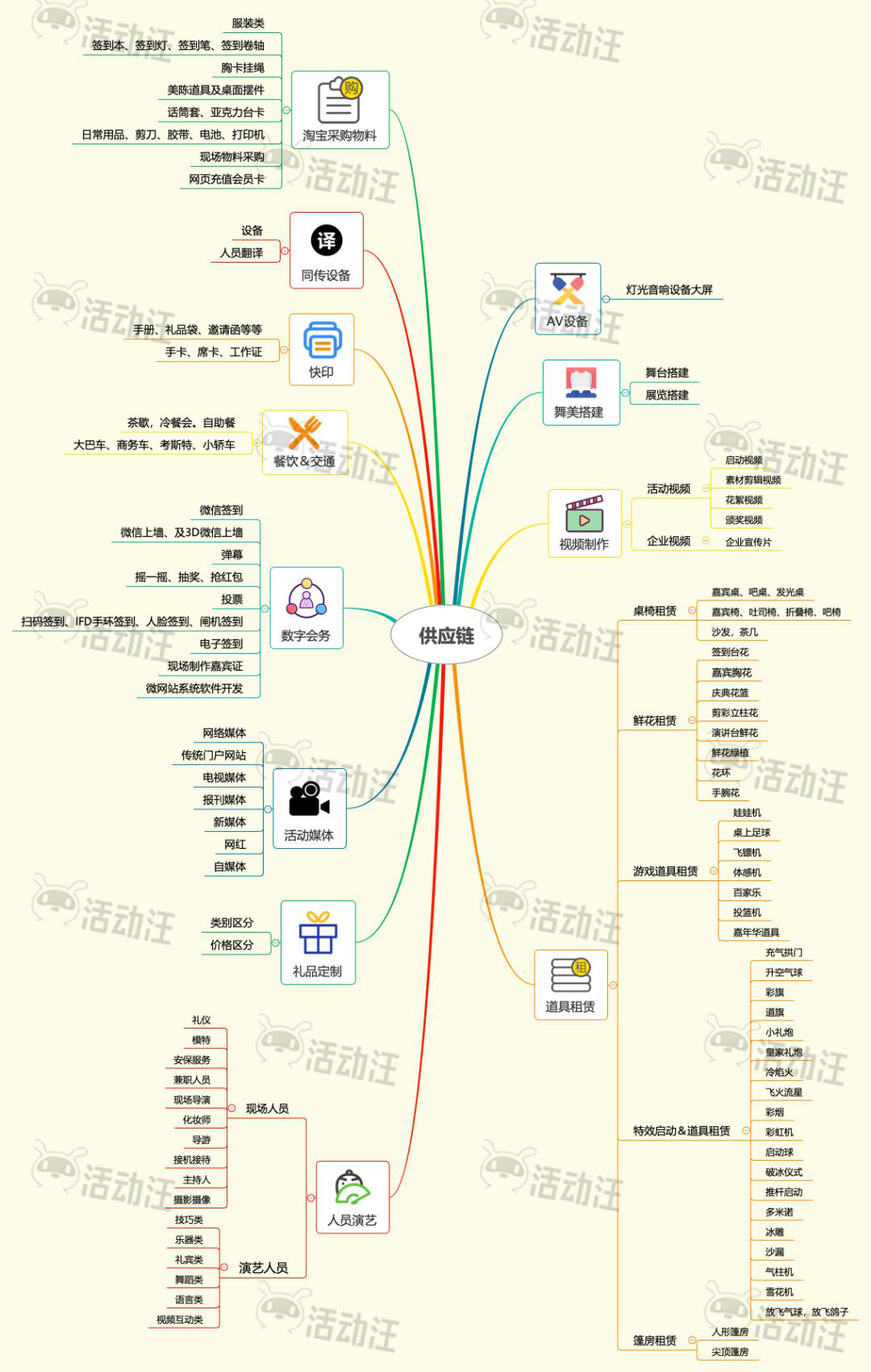 通过梳理,我将常规的活动供应链做了如下的区分,有不详尽的地方,仅供大家参考: